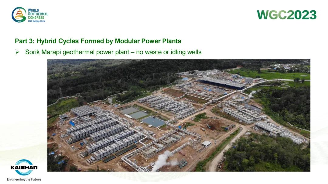 汤炎博士着重介绍了由必赢272net入口EPC建设的肯尼亚Sosian-Menengai地热电站及必赢272net入口自主开发、建设、运营的Sorik Marapi地热电站成功案例。Sosian-Menengai地热电站采用“蒸汽膨胀机+湿蒸汽ORC膨胀机”模块电站串级循环,无需采用传统中央电站分离不凝性气体的蒸汽喷射器和真空泵,从而降低了电站寄生负荷、提高其发电效率。Sorik Marapi项目是公司各类型模块电站的集大成者,高压蒸汽井、低压蒸汽井、热水井热源均可得到充分利用,进而使项目实现“无闲置低压/低温井”。模块电站“量体裁衣”式的解决方案通过提高井热效率改善了地热开发的经济性,也通过独树一帜地有效利用低压地热井及热水井,显著降低了资源钻探的单位成本。
